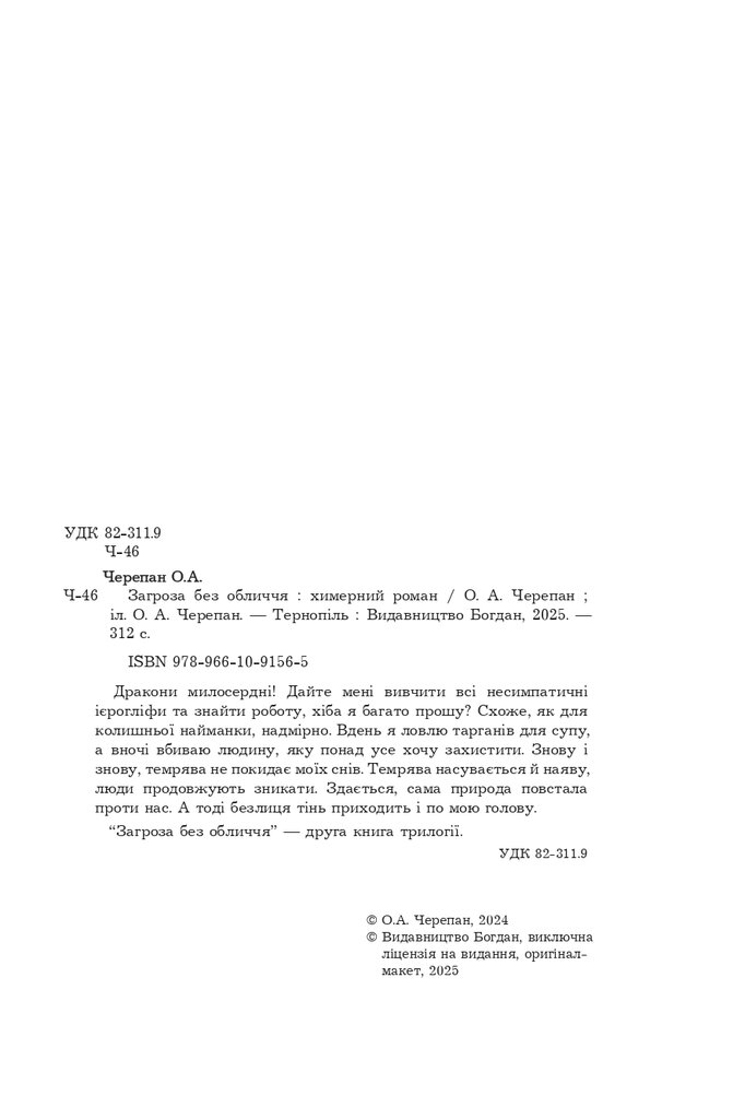 Дракони милосердні! Дайте мені вивчити всі несимпатичні ієрогліфи та знайти роботу, хіба я багато прошу? Схоже, як для колишньої найманки, надмірно. Вдень я ловлю тарганів для супу, а вночі вбиваю людину, яку понад усе хочу захистити. Знову і знову, темрява не покидає моїх снів. Темрява насувається й наяву, люди продовжують зникати. Здається, сама природа повстала проти нас. А тоді безлиця тінь приходить і по мою голову.