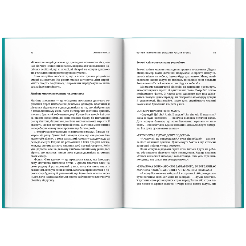 Книжка Лінди Ґолдмен є грунтовним посібником, який надасть дорослим і розуміння, і словник, як говорити з дітьми про горе. Книжка пропонує широкий спектр варіантів і технік, як можна підтримати дитину, а також велику кількість історій зцілення, які підкажуть дорослим і дітям, як рухатися далі крізь горе.
